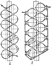 Ткань можно заправлять на цилиндры так, чтобы она попеременно соприкасалась с их поверхностью лицом и изнанкой (двусторонняя сушка) или только изнанкой (односторонняя сушка), как это показано на рис. 4. Односторонняя сушка применяется при аппретировании - тканей, когда ткань желательно сушить со стороны изнанки, чтобы на лицевой стороне не появлялся ненужный жирный блеск.