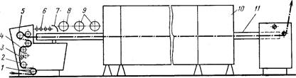 Рис. 15. Технологическая схема однодольной сушильно-ширильной машины
