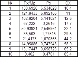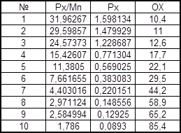 Рх / Мр = Рв (Vв /Vх)n2 , отсюда Рх / Мр = (рв/Мр)(ОВ/ОХ)n2 , где ОВ= 85,4 ; n2 =1.25