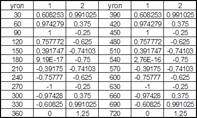 Подставив эти значения в формулы скорости и ускорения и подсчитав результаты занесем их в таблицу 5.