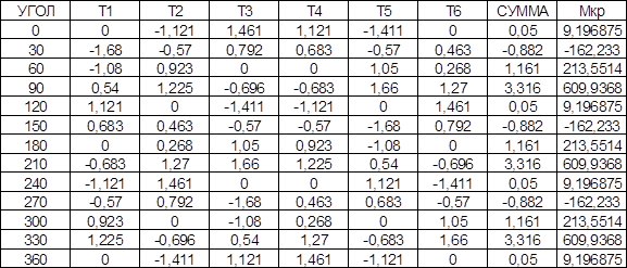 Суммарный набегающий крутящий момент будет : å Мкр = å (å Тi) Fп R , где Fп - площадь поршня : Fп = 0,005 м2 , ; R= 0,0375 м . - радиус кривошипа . Порядок работы поршней в шести цилиндровом рядном двигателе : 1-4-2-6-3-5 .