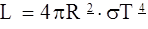 где s =5,6×10-5 - постоянная Стефана. Мощность излучения всей поверхности звезды, или ее светимость, очевидно, будет равна