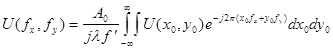 Таким образом, распределение комплексных амплитуд световых полей в задней и передней плоскостях фурье-объектива 4 оптической системы связаны между собой парой преобразований Фурье. Поле в задней фокальной плоскости является пространственным амплитудно-фазовым спектром сигнала, помещенного в его передней фокальной плоскости.