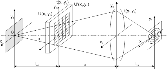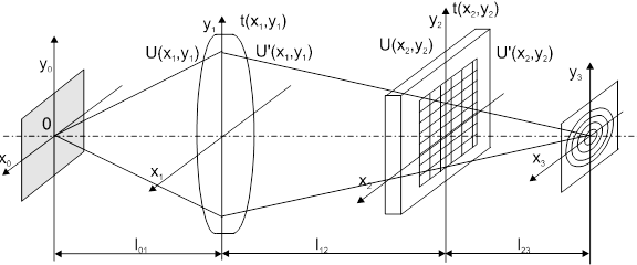 Рис.3. Схема КОС со входным транспарантом за фурье-объективом