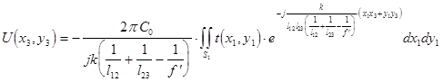 , т.е. плоскость х3у3 спектрального анализа должна совпа-дать с плоскостью х2у2 размещения фурье-объектива, что физически нереализуемо в оптической системе, согласно условию Гауса.