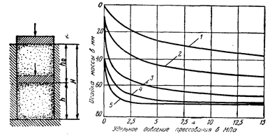 где Н—высота засыпки порошка в форму пресса; h—высота полученной прессовки.