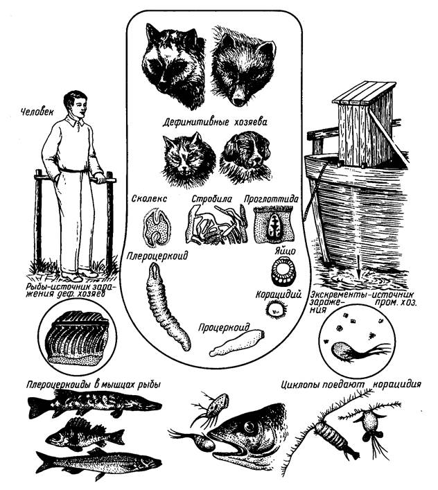 Рис. II. Схема развития Diphyllobothrium latum