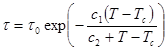 Формула (49) часто называется законом Аррениуса. В полимерных полярных диэлектриках этот закон не редко не выполняется, т.к. поворот кинетической единицы с дипольным моментом (звена, группы, сегмента и т.п.) определяется не фиксированной величиной потенциального барьера, а кооперативным характером теплового движения кинетических единиц. Смысл данного выражения в том, что поворот данной группы в значительной мере обусловлен тепловым движением соседних с ней кинетических единиц. Ведь для поворота группы необходим достаточный свободный объем, который появляется при «удачном» мгновенном расположении «соседей». При температурах выше температуры стеклования зависимость времени релаксации от Т описывается т.н. уравнением ВЛФ - Вильямса-Ландела-Ферри: