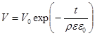 Для определения постоянной С применим начальные условия: при t=0 V = V0. Окончательно получим: