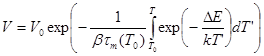 где V0 T0 - начальные значения поверхностного потенциала и температуры, V, Т - конечные значения этих физических величин, τm(T0) - время максвелловской релаксации при начальной температуре.