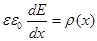В нашем случае ρ зависит только от одной координаты (х), от одной координаты будут зависеть напряженность и индукция электрического поля. Кроме того, векторы направлены вдоль оси ОХ, что позволяет рассматривать только одну их проекцию на эту ось, модуль которой равен модулю соответствующего вектора. Тогда в уравнении (13) получим: