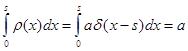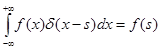 Бесконечные пределы можно заменить на конечные, включающие точку «скачка» дельта-функции, поскольку вне этой области подынтегральное выражение равно нулю. В нашем случае достаточно ограничиться пределами от 0 до s. Интегрируя (23) в этих пределах, по свойству (24) получаем: