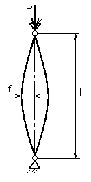 , прогиб быстро возрастает. Если до загружения стержень (рессора) имела начальное искривление, которое приближенно можно считать синусоидой с одной полуволной и амплитудой f0, то при действии продольной силы Р дополнительный прогиб посредине будет равен:
