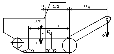 Для определения данного параметра сначала необходимо найти положение центра тяжести вновь спроектированного трактора. Положение центра тяжести (центра масс) гусеничного трактора устанавливают так, чтобы получить равномерное распределение вертикальных нагрузок по опорным каткам при наиболее вероятном тяговом усилии. Оптимальная координата центра тяжести определяется из формулы