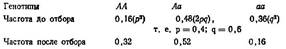 Простейший возможный случай относится к одному локусу с двумя аллелями, например Л и а, с частотами соответственно р и q. Большая часть рассуждений в популяционной генетике основана на системе именно такого типа. Допустим, что в результате отбора равновесие Харди—Вайнберга в некоей воображаемой популяции сдвигается следующим образом: