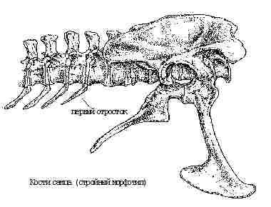 Проблема полового диморфизма динозавров интересует ученых уже более 70 лет. Еще в 1924 г. палеонтолог О.Абел предположил, что различия в черепных гребнях у канадских ламбиозавров могли быть связаны с половой принадлежностью особей. Очень удобными объектами для изучения полового диморфизма оказались цератопсы - рогатые динозавры, обитавшие в позднем мелу на территории современной Монголии. Эти динозавры имели различия в размерах костей и пропорциях тела. Ученые посчитали, что более крупные индивидуумы были самцами, а мелкие - самками. На такое предположение, безусловно, повлиял тот факт, что у млекопитающих и птиц именно самцы обычно крупнее и массивнее самок. Однако более глубокое изучение хищных ящеротазовых динозавров, называемых тероподами, показало, что эта точка зрения может быть неверной. Михаэль Раатх из музея в Хамвуде (Южная Африка) изучал кости маленького южноафриканского динозавра Syntarus rhodesiensis. Рассматривая кости молодых и взрослых особей, он обнаружил, что когда эти динозавры взрослели, то они развивались в два морфотипа: массивный и стройный. Так как эти различия были видны только у взрослых особей, то, скорее всего, они были обусловлены именно половой принадлежностью.