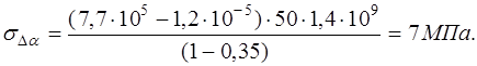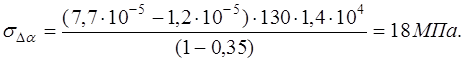 Как показали исследования, наибольшими по величине и соответственно наиболее опасными являются термические напряжения, возникающие вследствие разности коэффициентов линейного расширения полимера и металла. Такие напряжения могут быть определены расчетным путем по формуле
