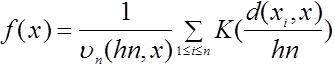 Методы оценивания плотности вероятности в пространствах общего вида предложен и первоначально изучены в [4]. В частности, в задачах классификации объектов нечисловой природы предлагаем использовать непараметрические ядерные оценки плотности типа Парзена-Розенблатта (этот вид оценок и его название введены нами в [4]):