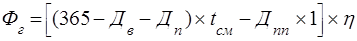-коэффициент использования оборудования, учитывающий простои в ремонтах и пр.