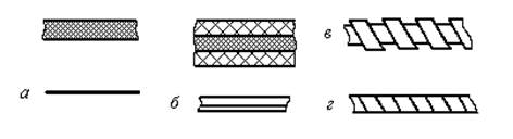 ное тело, не проводя линий, отделяющих отдельные слои изоляции), а толщиной менее 2 мм – зачерняют (рис. 13, а).