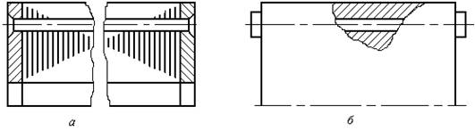 (рис. 18, а). При местном разрезе сердечник штрихуют как металл (рис. 18, б).