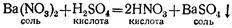 2. Соли могут реагировать с кислотами. Так, раствор азотнокислого бария Ва(гЮз)а взаимодействует с раствором серной кислоты, образуя новую кислоту и новую соль: