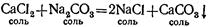 Если слить вместе водные растворы хлористого кальция CaCl2 я углекислого натрия Na2CO3 TO тотчас же образуется белый осадок нерастворимого в воде углекислого кальция СаСО3, а в растворе — хлористый натрий: