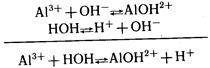 Столкновение ионов Н+ и С– к образованию соединения не приводит. Из имеющихся в растворе ионов малодиссоциирующий продукт образуют ионы Аl3+ и ОН–. Связывание ионов ОН– в малодиссоциирующий ион АlOН2+ (К= 1,38 • 10–9) вызывает дальнейший распад молекул воды на ионы: