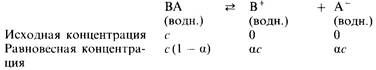 Запишем теперь выражение для константы равновесия рассматриваемой диссоциации