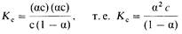 Это соотношение и представляет собой закон разбавления Оствальда. Константа Кс называется константой диссоциации электролита. Чем больше Kc, тем сильнее электролит.