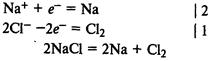 Электролиз расплава хлорида натрия. На катоде восстанавливаются катионы Na+ и выделяется металлический натрий, на аноде окисляются хлорид-ионы и выделяется хлор: