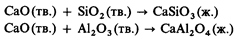 Оксид кальция соединяется с примесями, образуя шлак. Шлак содержит силикат кальция и алюминат кальция: