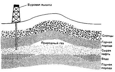 Природный газ и сырая нефть обычно обнаруживаются вместе с водой в нефтеносных слоях, расположенных между слоями горных пород (рис. 2). Термин «природный газ» применим также к газам, которые образуются в природных условиях в результате разложения угля. Природный газ и сырая нефть разрабатываются на всех континентах, за исключением Антарктиды. Крупнейшими производителями природного газа в мире являются Россия, Алжир, Иран и Соединенные Штаты. Крупнейшими производителями сырой нефти являются Венесуэла, Саудовская Аравия, Кувейт и Иран.