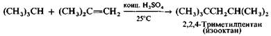 . В этом процессе алканы и алкены, которые образовались в результате крекинга, воссоединяются с образованием высокосортных бензинов. Такие алканы и алкены обычно имеют от двух до четырех атомов углерода. Процесс проводится при низкой температуре с использованием сильнокислотного катализатора, например серной кислоты:
