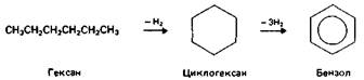 Отщепление водорода от гексана, а затем от циклогексана называется дегидрированием. Риформинг этого типа в сущности представляет собой один из процессов крекинга. Его называют платформингом, каталитическим риформингом или просто риформингом. В некоторых случаях в реакционную систему вводят водород, чтобы предотвратить полное разложение алкана до углерода и поддержать активность катализатора. В этом случае процесс называется гидроформингом.