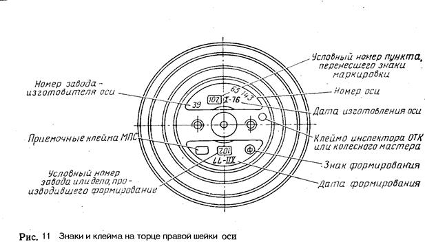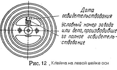 На принятой колесной паре после полного освидетельствования и формирования, а так же на принятых отдельных элементах ставят приемочные клейма: