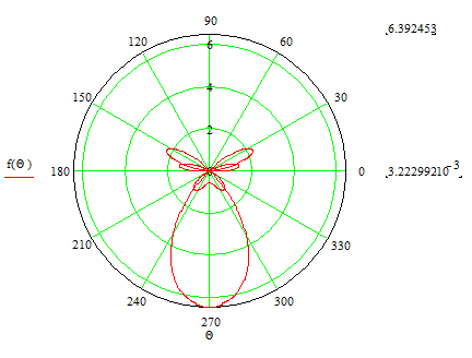 Для построения диаграммы направленности антенны, пользуясь экспериментальными данными исследования спиральных антенн [1.Рис.1.3.XXV.], вычисляю по формулам (4) – (7) функцию направленности антенны.