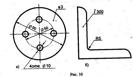 Размеры толщины или длины детали, форма которой задана одним видом, наносят, как показано на рис. 10. Перед числом, указывающим толщину детали, наносят букву S, а перед числом, указывающим длину детали, - букву L