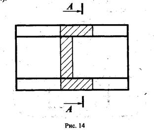 Или в стороне от этой линии. Вынесенное сечение может быть размещено на месте, предназначенном для одного из видов (см. рис. 13), а также в разрыве между частями одного и того же вида (рис. 16) Для несимметричных наложенных сечений линию сечения проводят со стрелками, но буквами не обозначают (рис. 14).