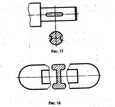 Однако можно заметить, что это относится к изображениям отверстий и углублений цилиндрической, конической и шарообразной формы и не распространяется на изображение в сечении шпоночного паза.