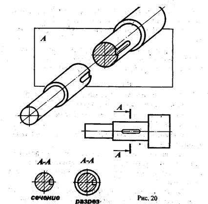 Между разрезом и сечением существует различие. Его видно в рис. 20.