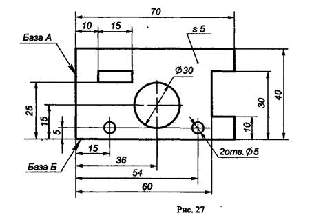 Общее количество размеров на чертеже должно быть минимальным, но достаточным для изготовления и контроля изделия; не допускается повторять размеры одного и того же элемента на разных изображениях. Чтобы получить наиболее понятное и удобное для чтения расположение размеров, знаков и надписей на чертежах, их размещают по возможности равномерно на всех изображениях. Размеры нескольких одинаковых элементов изделия наносят один раз, указывая на полке линии-выноски количество этих элементов (рис. 27).