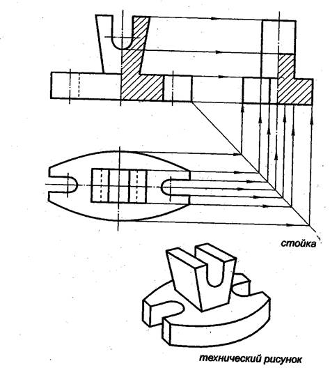 (выбор главного вида; определение необходимого и достаточного количества изображений для выявления конструктивной формы детали)